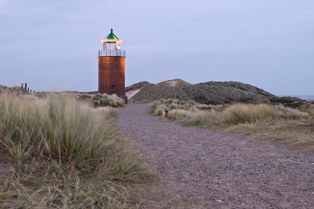 Der alte Leuchtturm vor Kampen auf Sylt ist heute nicht mehr in Betrieb. Er passt aber wunderbar in die Dünenlandschaft.