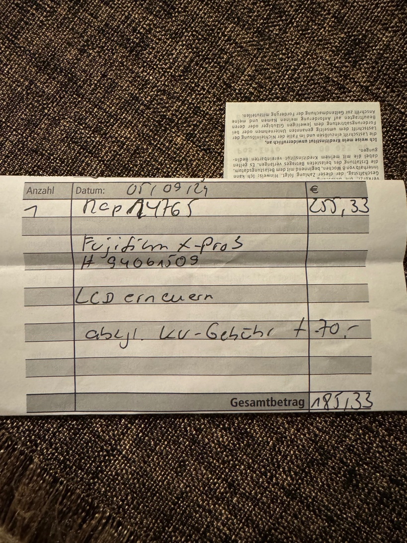 jazzlampe Geschrieben 23. März Share #112 Geschrieben 23. März Guten Morgen, das Thema scheint technisch zuende erzählt zu sein. Aber die Frage nach den unterschiedlichen Reparatur-Ansätzen und entsprechend unterschiedlichen Kosten finde ich immer noch interessant. Nachdem es gestern Abend auch meine X-Pro3 erwischt hat (Mini-Display zeigt nur noch Streifen), habe ich heute einen Reparatur-Auftrag bei Fujifilm gestartet. Ich werde mal berichten, wie sich der Kostenvoranschlag bei mr gestaltet. Die X-Pro3 ist immer noch die Kamera, bei der sich dieses verliebte Gefühl einstellt, sobald ich sie aus der Tasche hole. Die wird auf jeden Fall repariert Allradflokati, fotoVISION, Photoweg und 1 weiterer haben darauf reagiert 3 1 Link zum Beitrag Auf anderen Seiten teilen More sharing options...