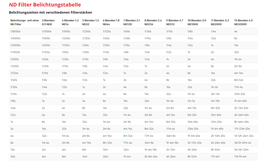 TommyS Geschrieben 24. März 2024 Share #17 Geschrieben 24. März 2024 (bearbeitet) Für die seltenen Einsätze meiner ND- Filter habe ich die App "Long Exposure Calculator" auf dem Smartphone. Belichtung ohne Filter manuell messen, Zeit und gewählten Filter in der App auswählen. Wenn die gewünschte Zeit passt, Filter drauf und los... Auch die kostenlose Version funktioniert gut - ab 10 Sekunden läuft eine Stoppuhr mit Alarmfunktion, falls man mit Fernauslöser und B fotografiert. bearbeitet 24. März 2024 von TommyS amundsen64 hat darauf reagiert 1 Link zum Beitrag Auf anderen Seiten teilen More sharing options...