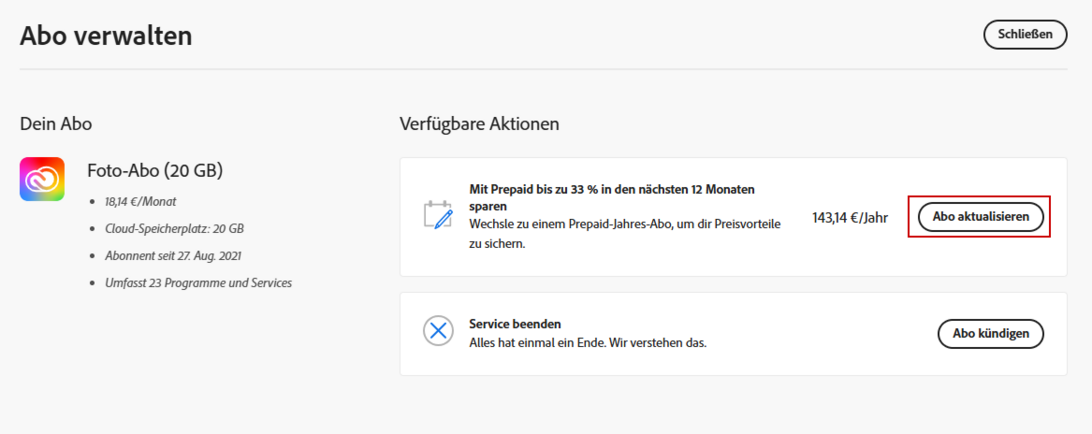 Adobe stellt das Foto Abo ein?